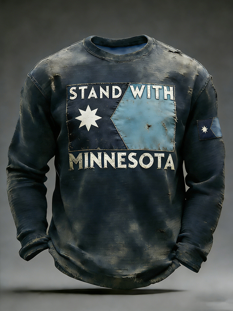 Men's "support Minnesota" Distressed Cotton Sweatshirt