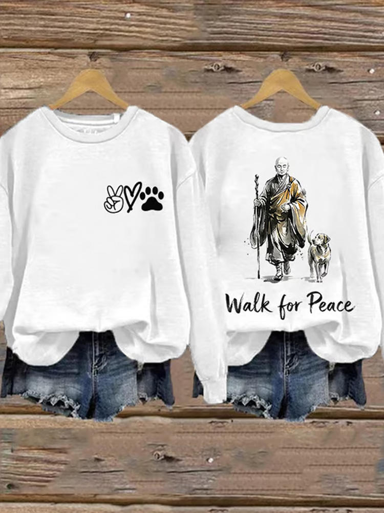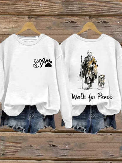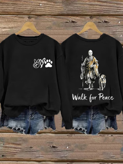 Retro Walk For Peace Monks With Dog Print Sweatshirt